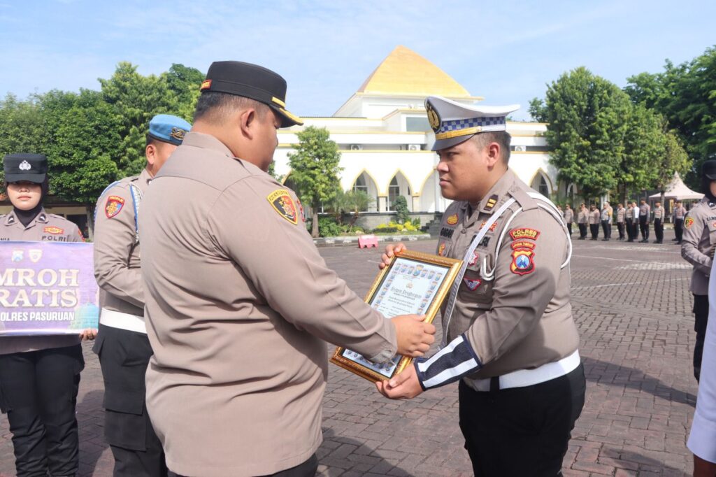 PASURUAN, paspos.com — Polres Pasuruan menggelar Apel Pemberian Penghargaan kepada Anggota Berprestasi serta Penyerahan Hadiah Umrah di Lapangan Apel Sarja Arya Rancana, Kamis (20/11/2025).
