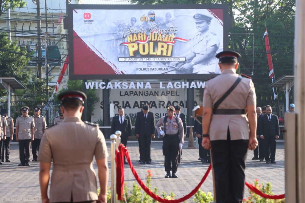 PASURUAN, paspos.com — Polres Pasuruan menggelar upacara peringatan Hari Juang Polri 2025 serentak bersama seluruh jajaran Polri di Indonesia di Mapolres Pasuruan pada Kamis (21/8/2025).